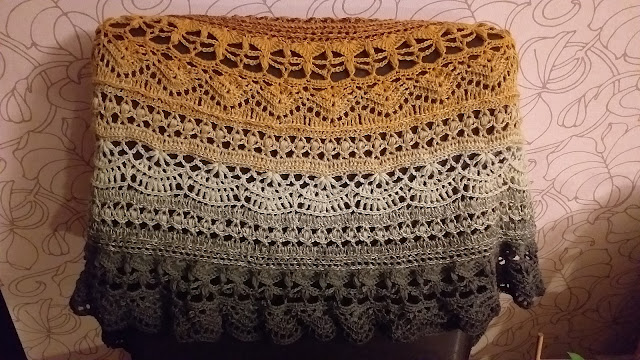 Kolejna chusta półokrągła właśnie zeskoczyła z szydełka. Technikalia: rozmiar 60x190cm wzór #księżycowadafni by #JulitaJanicka, motek 1500m b/a 3nitki od #kaśkowemotki #agamotki.